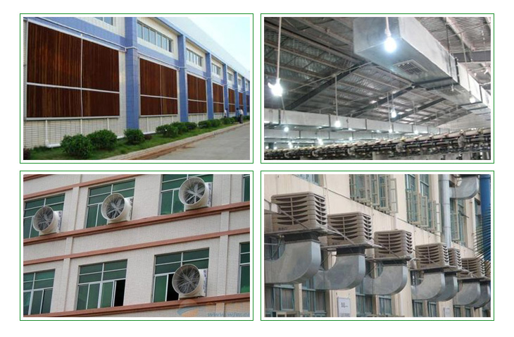 通风降温对箱包行业的作用性:运用负压式风机向外强力排风,使厂房车间气压始终低于室外大气压(即负压),室外清新,清凉空气在压力作用下自进风口进入厂房车间使车间与外界空气良好流通,形成定向对流风,使原来厂房内高温浊热空气,车间异味全部随不断流通的空气向外排出,车间时刻对流清新,清凉的自然风,达到降温,排气,清除异味的作用。